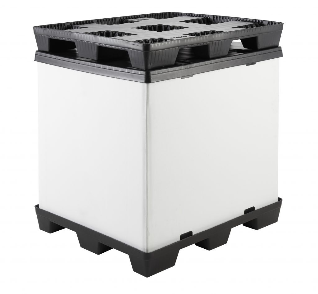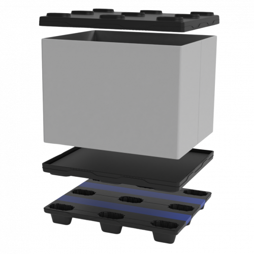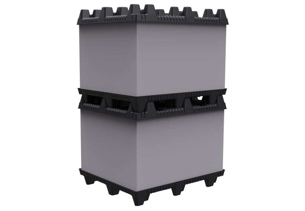 An advanced, low-profile design—featuring nestable plastic pallets and covers plus interlocking pallet legs—reduces warehouse space needs and lowers return-freight costs.